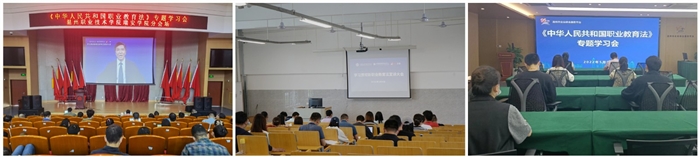 我校将认真领会会议精神,积极组织职业教育法的学习宣传,紧密结合“职教二十条”等国家重要文件精神扎实做好职业教育法的贯彻落实,深化产教融合、校企合作,深入推进职教本科创建、温台高地建设、“双高校”建设等学校重点任务,奋力开创学校高质量内涵式发展的新局面,更好服务地方经济社会发展,为推进职业教育改革、提高职业教育发展质量做出温职贡献。